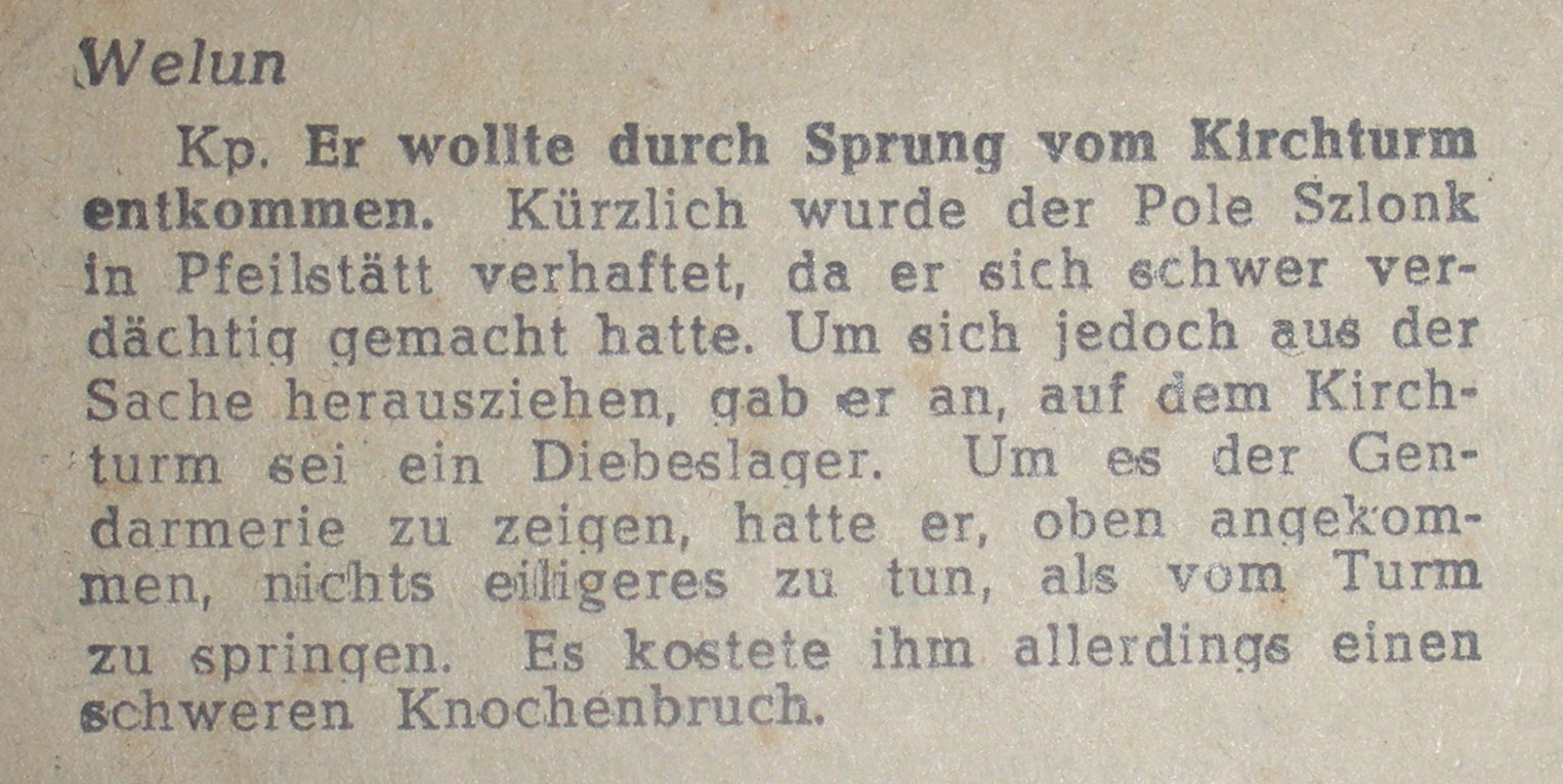 Litzmannstädter Zeitung z dnia 30 marca 1944 w krótkiej notce opisał skok Tadeusza Szlenka (gazeta dostępna w necie jako zbiór archiwalny http://bc.wimbp.lodz.pl/dlibra/publication/31699?tab=1). W załączeniu wspomniana notka. Autor przekręcił nazwisko Szlenk na Szlonk.