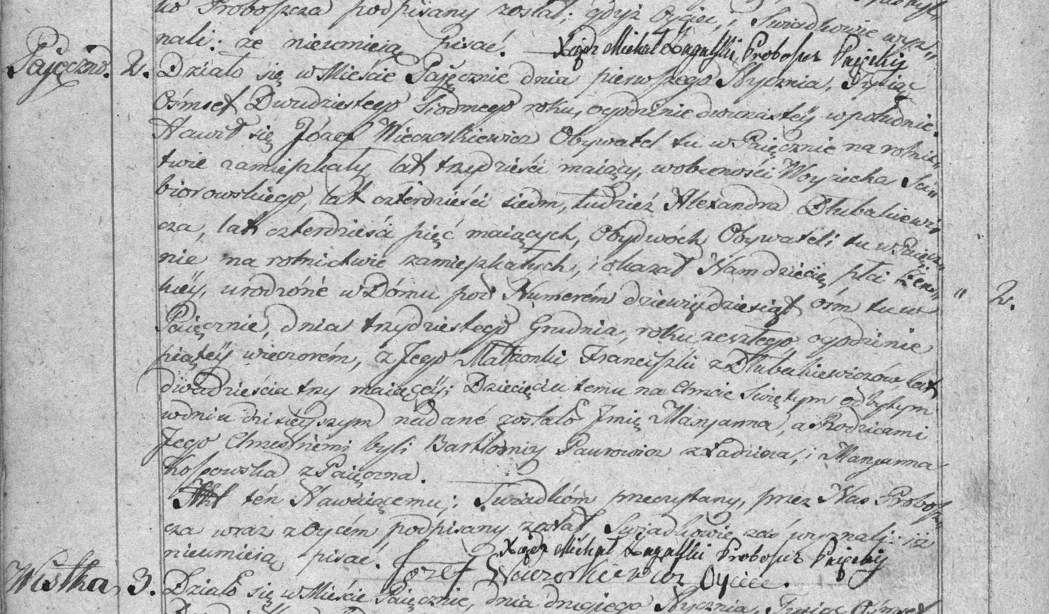 A odnośnie Wieczorkiewiczów. Sprawdziłem kilkanaście lat akt metrykalnych. To nazwisko pojawia się równolegle z nazwiskiem Wieczorek. Znalazłem przypadki , że Wieczorkiewicz stał się z nieznanych przyczyn Wieczorkiem. W załączeniu akt metrykalny urodzenia Julianny Wieczorkiewicz z 1827r. O Wieczorkiewiczu wspomina K. Pach w swoim opracowaniu odnośnie dziejów Pajęczna.