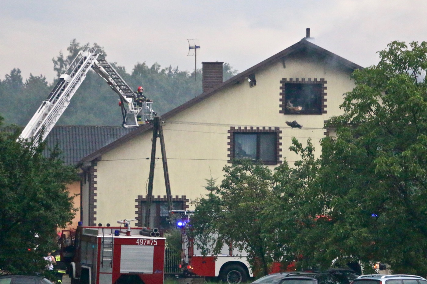 Interweniujący na miejscu strażacy szybko opanowali pożar, jednak ogień zdążył zniszczyć więźbę dachową, blachę oraz część wyposażenia strychu. W pożarze nikt nie odniósł obrażeń.