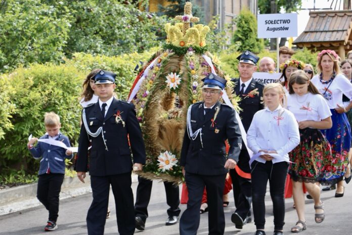 Uroczystości rozpoczęła Msza Święta w kościele parafialnym pw. św. Jana Chrzciciela, podczas której modlono się za rolników i strażaków, dziękując im za trud i poświęcenie. Po nabożeństwie kolorowy korowód dożynkowy, w którym uczestniczyli Starostowie Dożynek – Beata Sobczyńska i Jacek Lewera, delegacje sołectw, poczty sztandarowe, druhowie strażacy, zaproszeni goście i mieszkańcy, przeszedł na boisko sportowe przy szkole podstawowej.