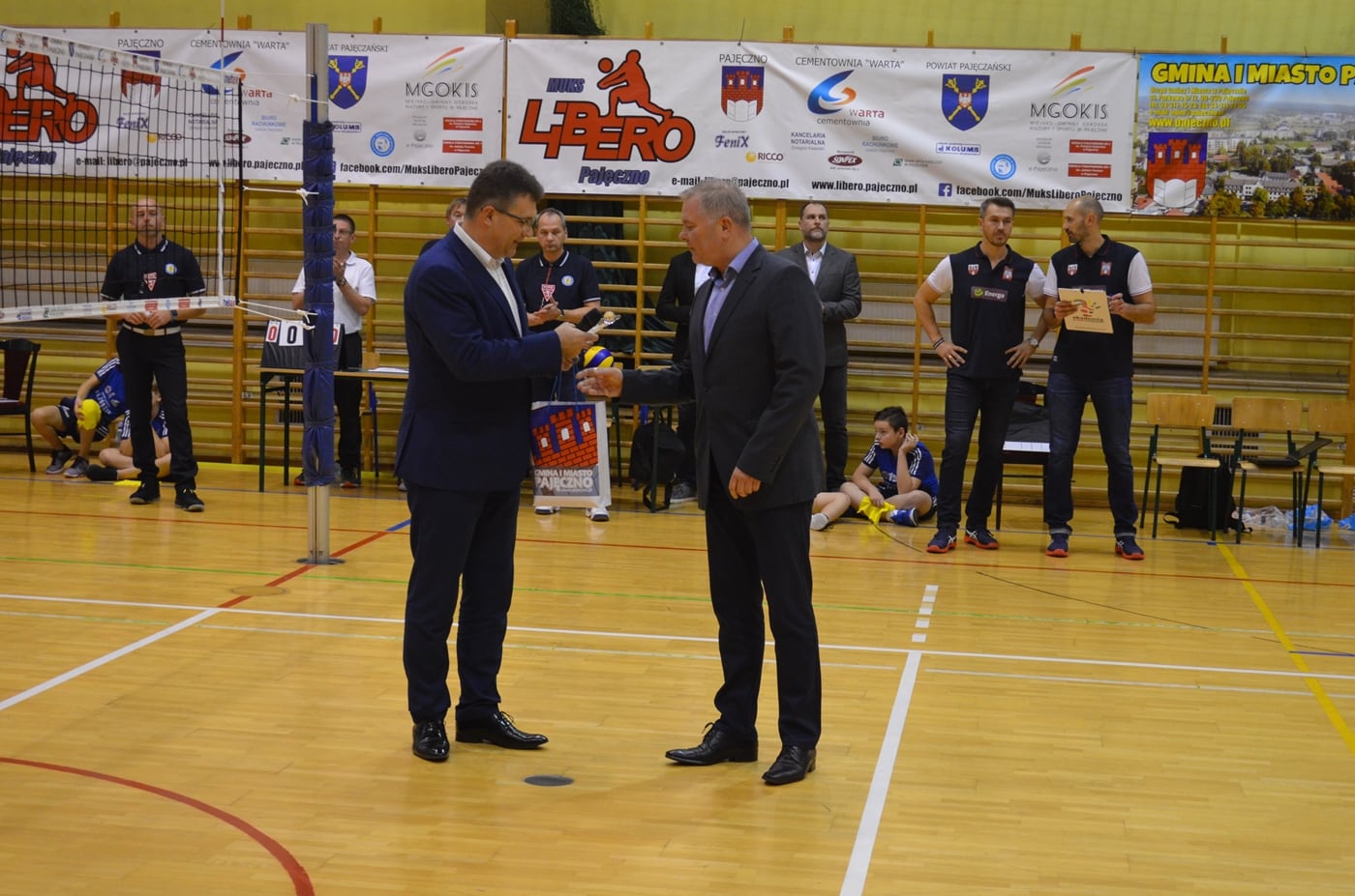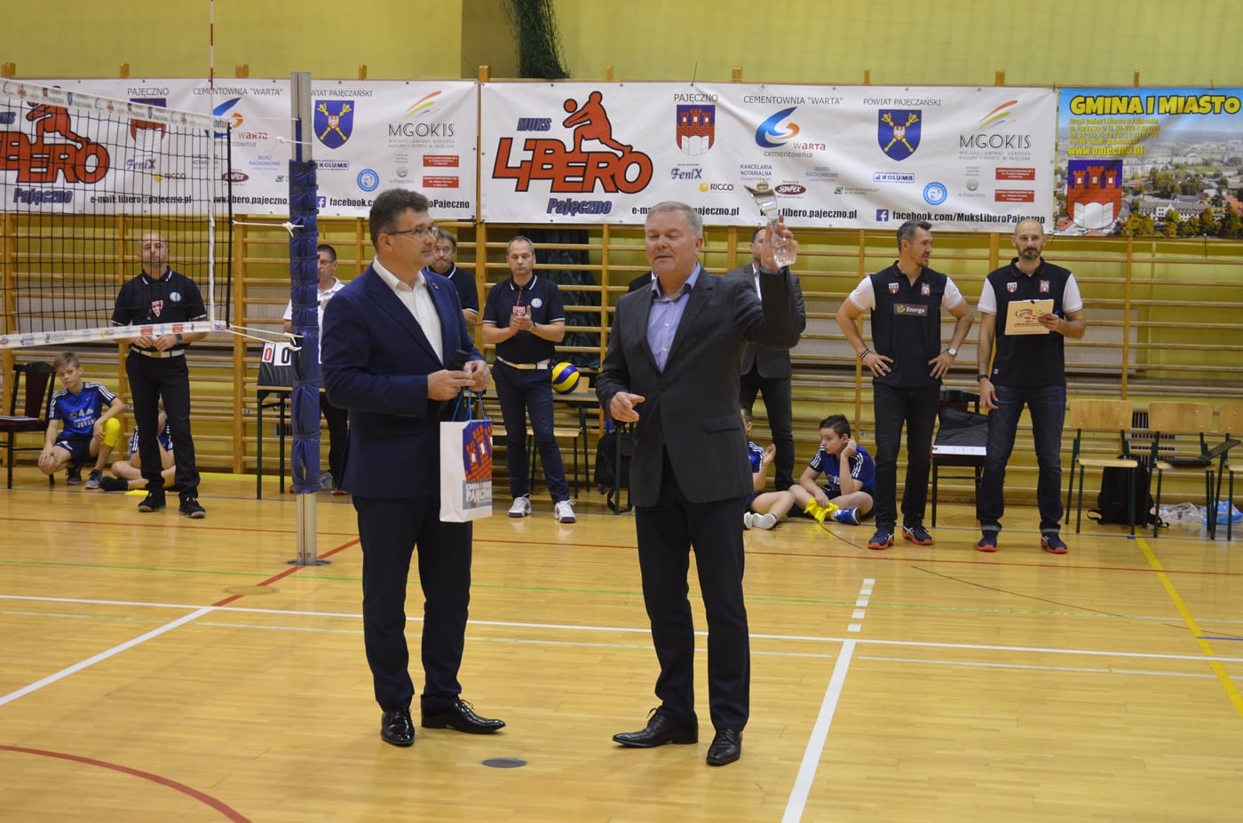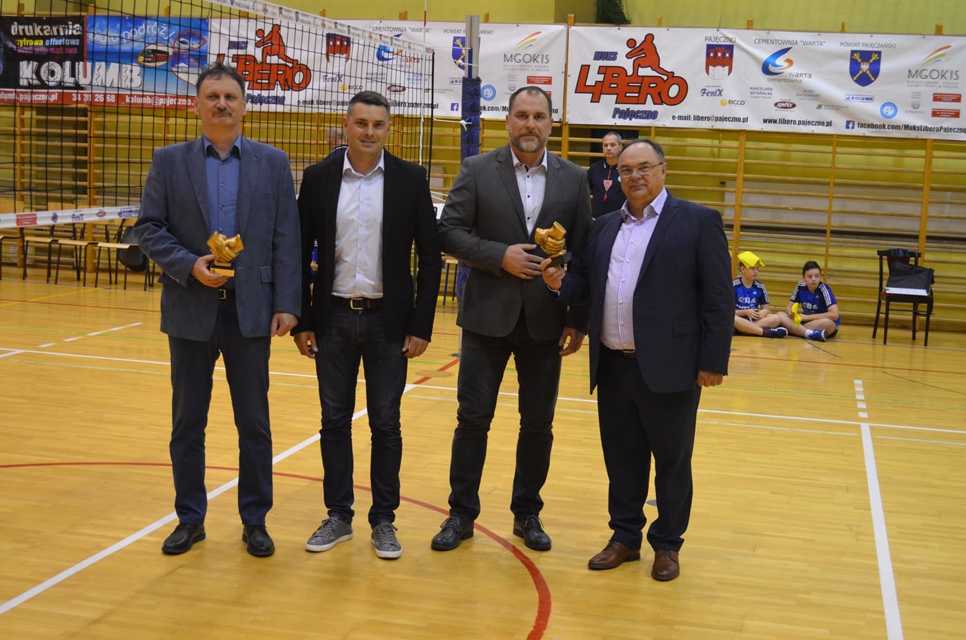 Przed rozpoczęciem spotkania Zarząd Klubu MUKS LIBERO PAJĘCZNO dziękując swoim najważniejszym sponsorom uhonorował okolicznościowymi statuetkami swoich najważniejszych sponsorów – Prezesa Zarządu Cementowni „WARTA” S.A. w Trębaczewie Dariusza Gawlaka (imieniu którego statuetkę odebrali Członek Zarządu Sławomir Kaźmierczak i Dyrektor Marek Górnik) oraz Burmistrza Gminy i Miasta Pajęczno Dariusza Tokarskiego.  Statuetki wręczyli Prezes MUKS LIBERO Michał Marchewka oraz Wiceprezes Karol Wiła.
