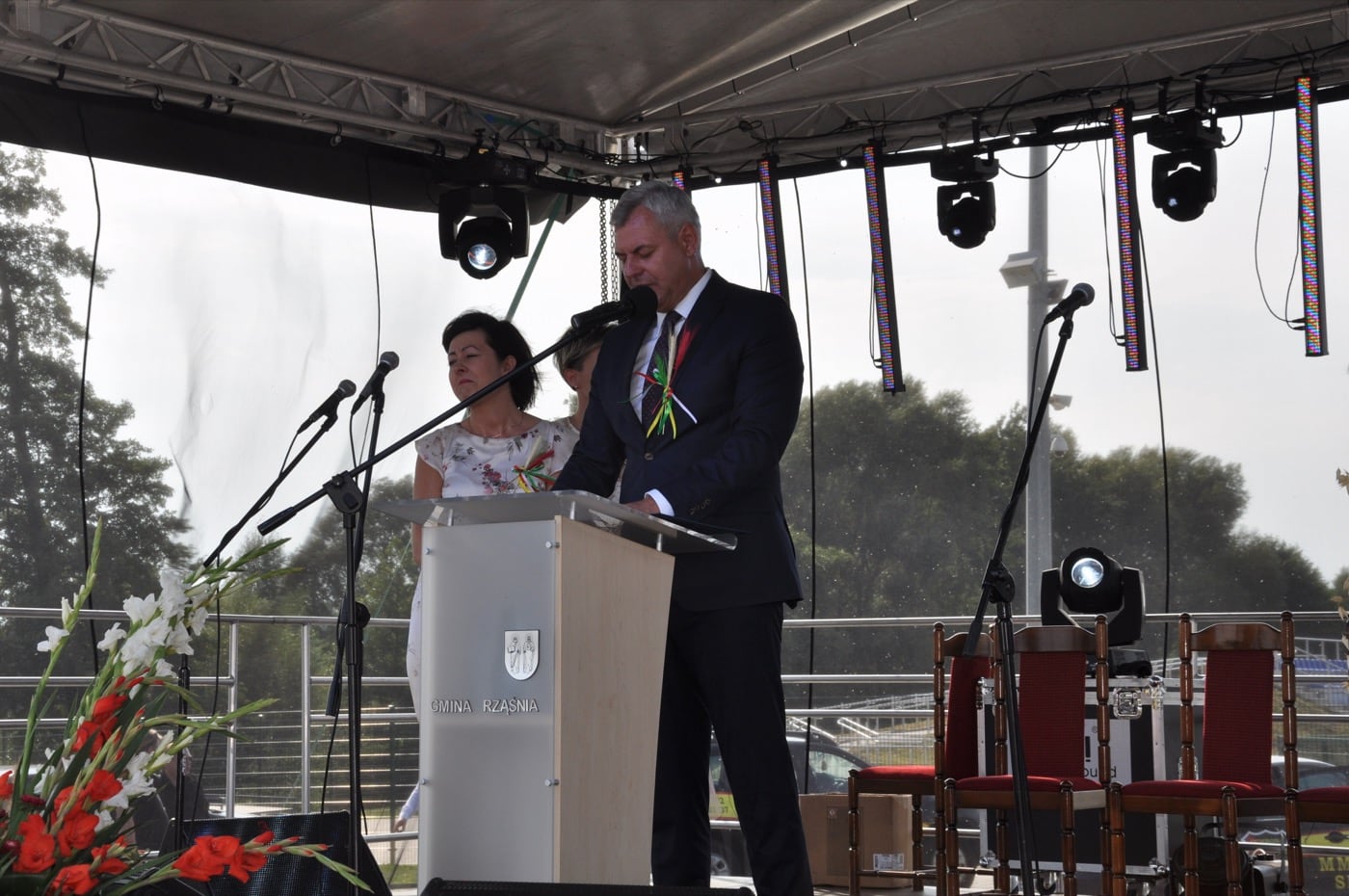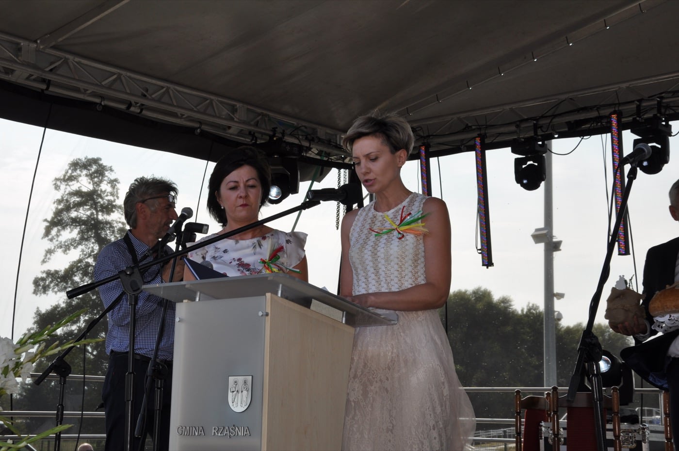 Wyrazy uznania dla Starostów Dożynek Pani Gabrieli Masek i Arturowi Brożynie. Dla jednostek Ochotniczej Straży Pożarnej z terenu naszej gminy, Rolników i Stowarzyszeń które przygotowały obfity i smaczny poczęstunek dla uczestników, dla wszystkich instytucji zaangażowanych w organizację tego święta.Dziękuję również w sposób wyjątkowy wszystkim mieszkańcom Gminy Rząśnia i Gościom, którzy tak licznie przybyli na to Święto Plonów. Dzięki Waszemu wspólnemu wysiłkowi i pogodzie ducha tegoroczne Dożynki stały się wspaniałą okazją do dziękczynienia za cały rok pracy naszych Mieszkańców oraz do radosnego świętowania.