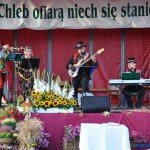 Była to jedna z wielu atrakcji przygotowanych przez mieszkańców Gawłowa, mimo iż pogoda nie do końca dopisała, to impreza zgromadziła bardzo wielu gości. Już kilka dni przed dożynkami, sznury samochodów przejeżdżały przez Gawłów aby podziwiać przygotowane na tą okazję przeróżne figury ze słomy. Osobliwe słomiane kompozycje robiły na przyjezdnych duże wrażenie i co rusz ktoś się zatrzymywał aby zrobić sobie z nimi zdjęcie. W dniu dożynek aby dojechać na miejsce trzeba było stać w korku, co już obrazuje nam ilość odwiedzających. Nie zawiodła również oprawa artystyczna, na scenie mogliśmy posłuchać lokalnych zespołów ludowych, Krakowską Grupe Biesiadną, a pod wieczór występu DJ’a. Jedną z atrakcji tegorocznych dożynek, był współorganizowany przez Lokalną Grupę Działania „Kraina Wielkiego Łuku Warty” festiwal „Nadwarciańskie Smaki”. Największym wzięciem cieszyło się stoisko w którym można było za darmo spróbować swojskiego bimbru. Wśród stoisk dało się również zauważyć przemykająca kamerę TVP, więc wkrótce możemy spodziewać się relacji z tego wydarzenia. Jednym słowem dożynki w Gawłowie uważam za świetnie zorganizowane i w stu procentach udane. Dajcie znać jak wyglądały dożynki w Waszych miejscowościach.