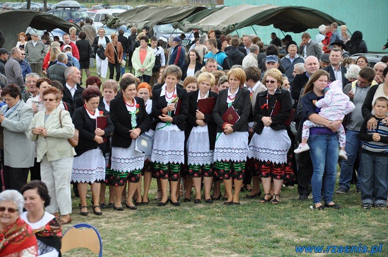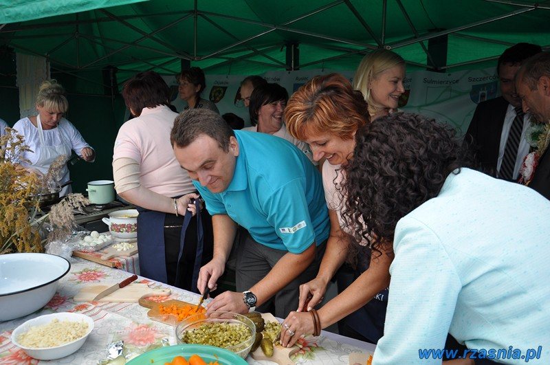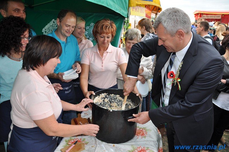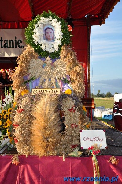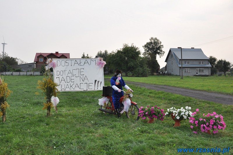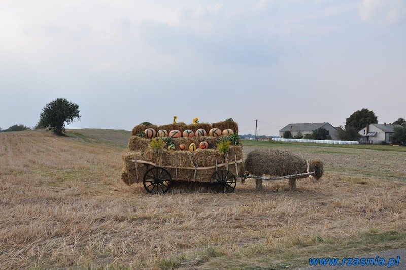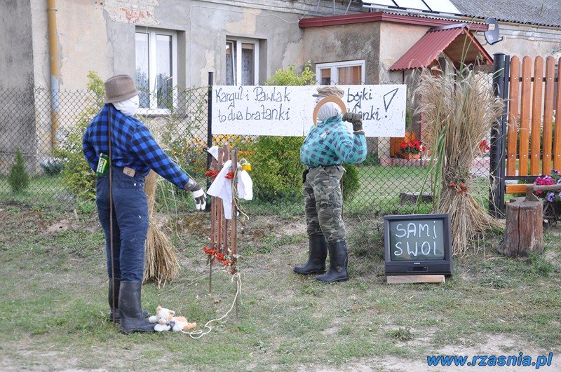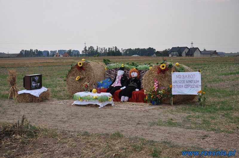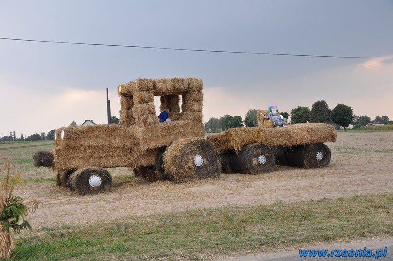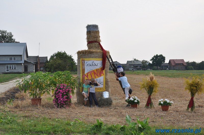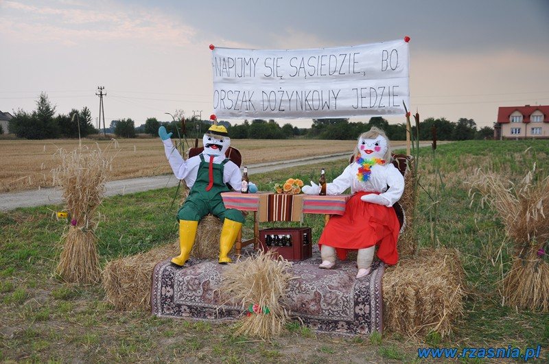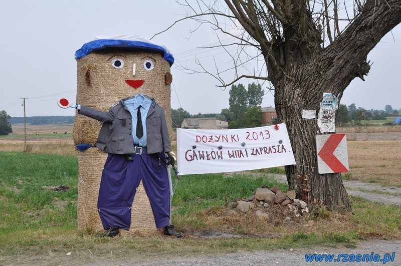 Była to jedna z wielu atrakcji przygotowanych przez mieszkańców Gawłowa, mimo iż pogoda nie do końca dopisała, to impreza zgromadziła bardzo wielu gości. Już kilka dni przed dożynkami, sznury samochodów przejeżdżały przez Gawłów aby podziwiać przygotowane na tą okazję przeróżne figury ze słomy. Osobliwe słomiane kompozycje robiły na przyjezdnych duże wrażenie i co rusz ktoś się zatrzymywał aby zrobić sobie z nimi zdjęcie. W dniu dożynek aby dojechać na miejsce trzeba było stać w korku, co już obrazuje nam ilość odwiedzających. Nie zawiodła również oprawa artystyczna, na scenie mogliśmy posłuchać lokalnych zespołów ludowych, Krakowską Grupe Biesiadną, a pod wieczór występu DJ’a. Jedną z atrakcji tegorocznych dożynek, był współorganizowany przez Lokalną Grupę Działania „Kraina Wielkiego Łuku Warty” festiwal „Nadwarciańskie Smaki”. Największym wzięciem cieszyło się stoisko w którym można było za darmo spróbować swojskiego bimbru. Wśród stoisk dało się również zauważyć przemykająca kamerę TVP, więc wkrótce możemy spodziewać się relacji z tego wydarzenia. Jednym słowem dożynki w Gawłowie uważam za świetnie zorganizowane i w stu procentach udane. Dajcie znać jak wyglądały dożynki w Waszych miejscowościach.