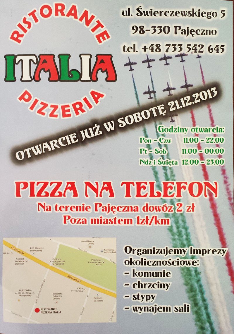 W sobotę 21 grudnia otworzono w Pajęcznie nową pizzerie – Ristorante Italia.
