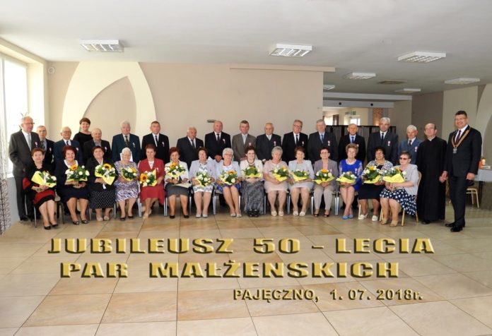 W pierwszą niedzielę lipca w niezwykle uroczystej oprawie, 27 par małżeńskich z terenu Gminy i Miasta Pajęczno świętowało jubileusz 50-lecia pożycia małżeńskiego. Uroczystości Złotych Godów rozpoczęły się mszą św. w Sanktuarium pw. W.N.M.P. w Pajęcznie, odprawioną przez proboszcza miejscowej parafii, ks. Wiesława Bąkowicza. Po mszy świętej Jubilaci udali się do restauracji, gdzie burmistrz Dariusz Tokarski złożył życzenia, a następnie w imieniu Prezydenta RP wręczył dostojnym parom obchodzącym Złote Gody medale „Za długoletnie pożycie małżeńskie” i stosowne legitymacje. Wszyscy Jubilaci zostali obdarowani kwiatami. Podniosłą chwilę uczczono symboliczną lampką szampana oraz gromkim sto lat.