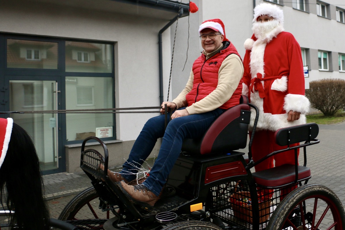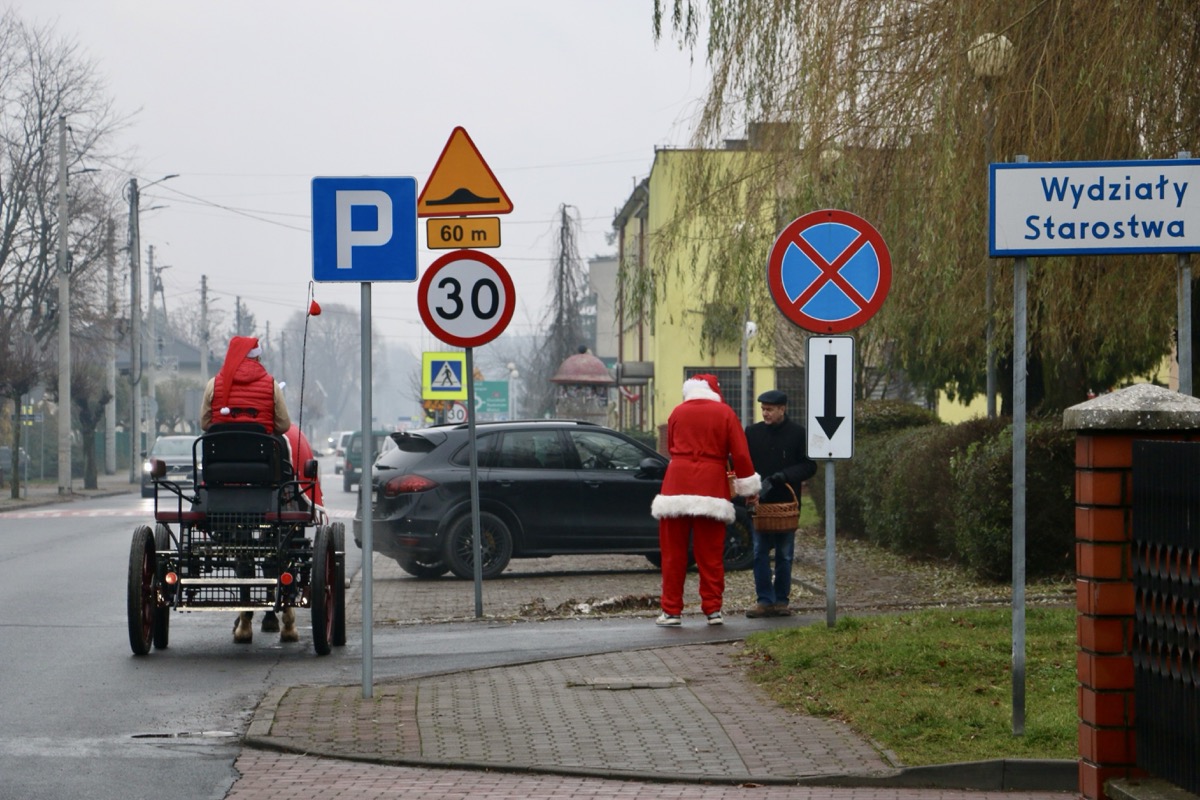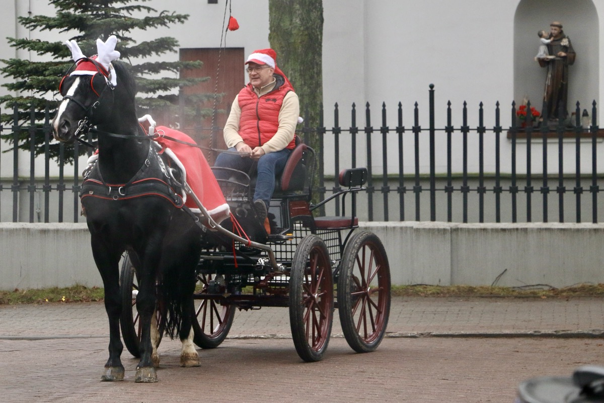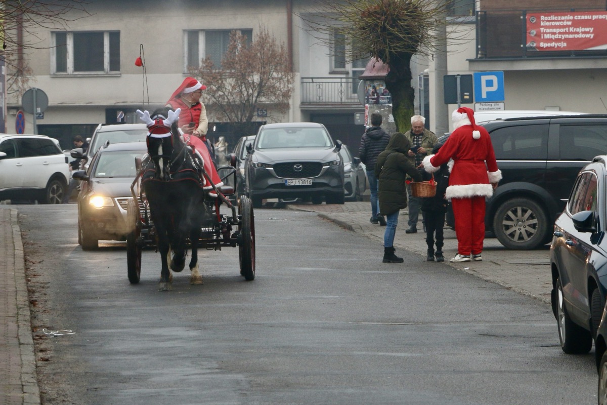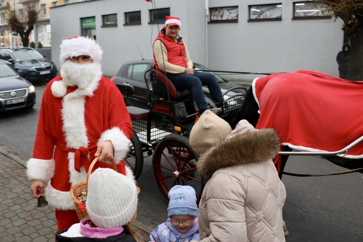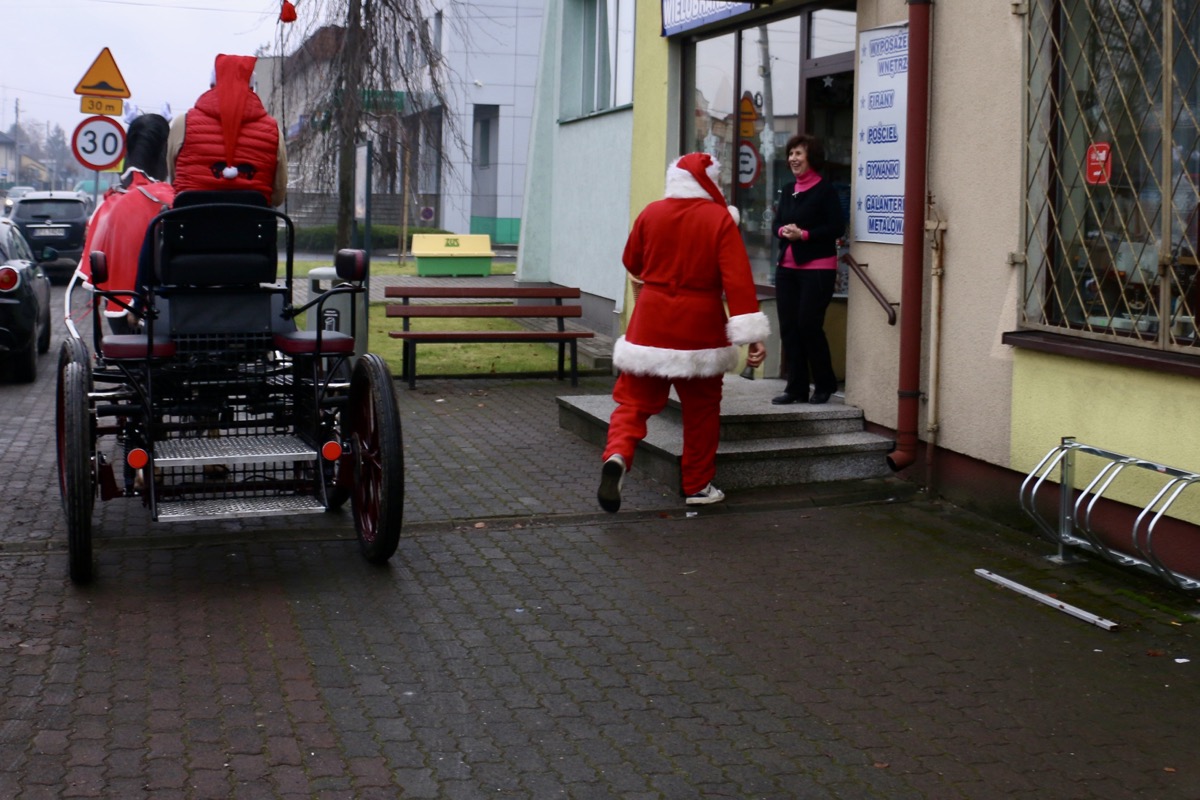 Łagodna zima sprawiła, że tym razem zabrakło śniegu, a słynne sanie Mikołaja musiały pozostać w domu. Zastąpiła je stylowa bryczka. W tak wyjątkowej oprawie Mikołaj wraz ze swoją wesołą świtą przemierzał pajęczańskie ulice, zatrzymując się w wielu zakątkach miasta.