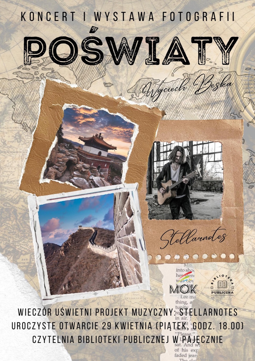 Koncertowi będzie towarzyszyć pokaz zdjęć autorstwa Wojciecha Beśki, będą to fotografie z różnych części świata m.in. z Australii, Chin, Japonii, Senegalu, Kanady, czy Kolumbii. Wydarzenie odbędzie się, w piątek, 29 kwietnia, o godz. 18.00, w czytelni Biblioteki Publicznej (ul. Wiśniowa 5).