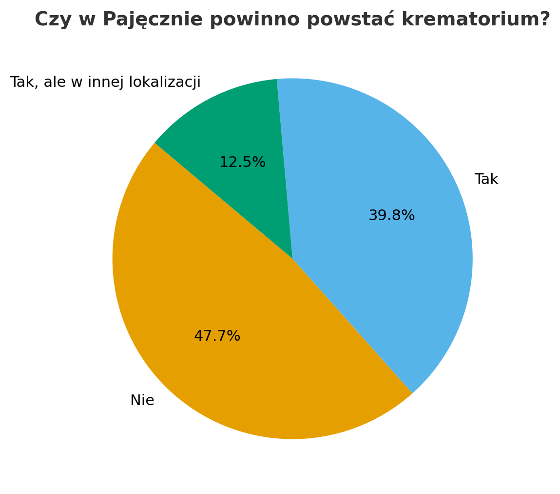 Wyniki pokazują, że mieszkańcy Pajęczna są mocno podzieleni – największa grupa sprzeciwia się inwestycji, ale łącznie ponad połowa (52,29%) dopuszcza powstanie krematorium, choć część pod warunkiem zmiany lokalizacji.