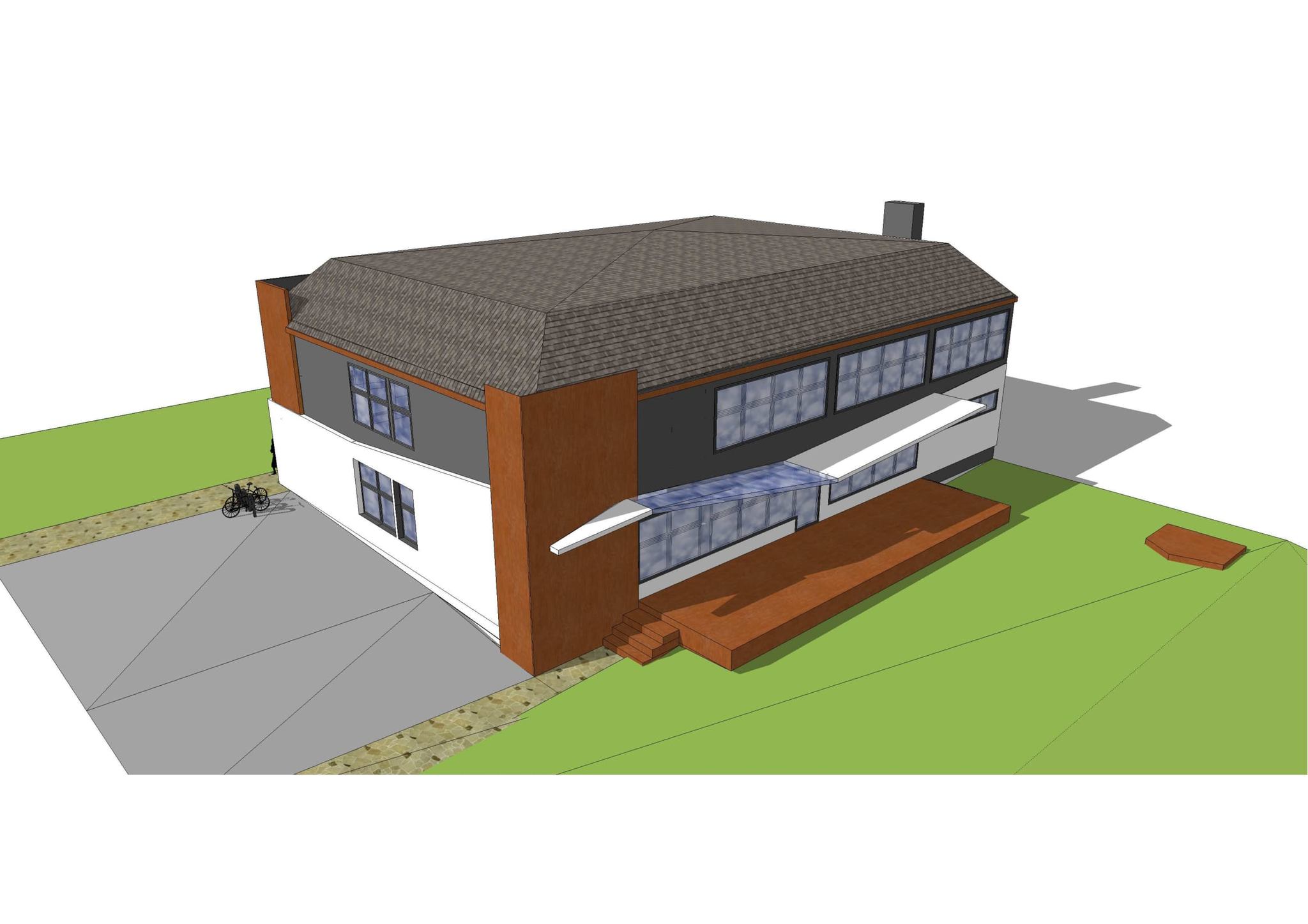 Co to za projekt, gdzie zadaszenie wchodzi w drzwi wejściowe i okna.