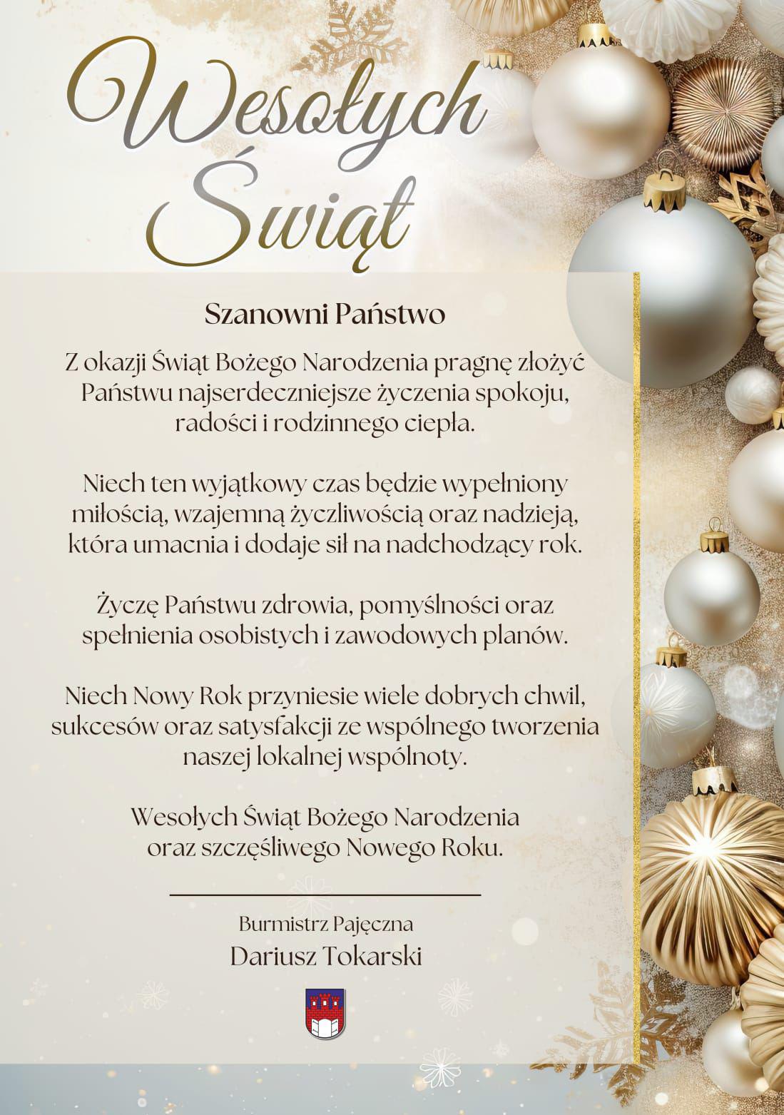 Zokazji Swiąt Bożego Narodzenia pragnę złożyć