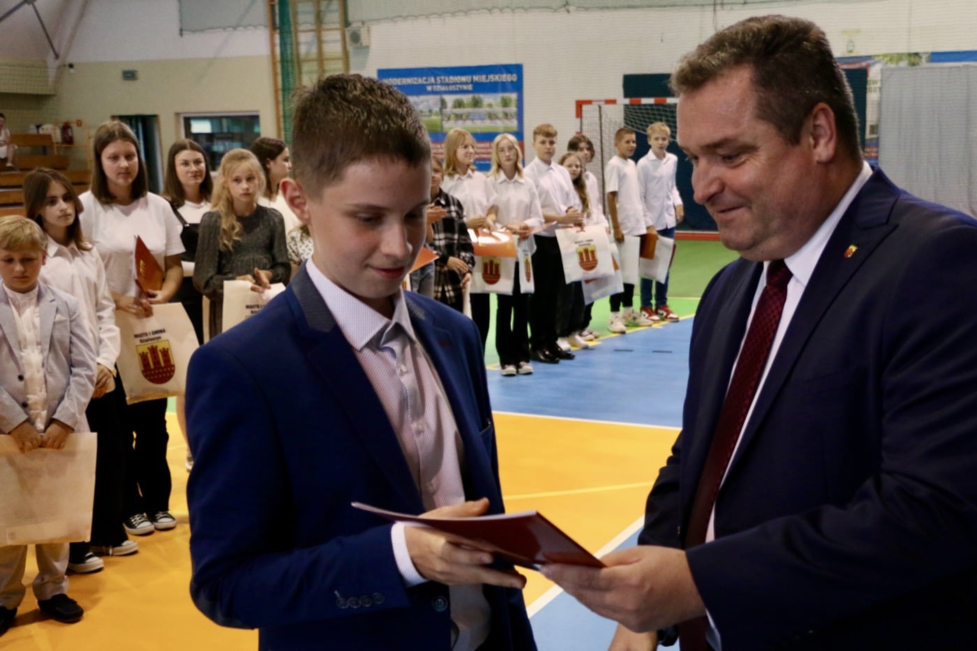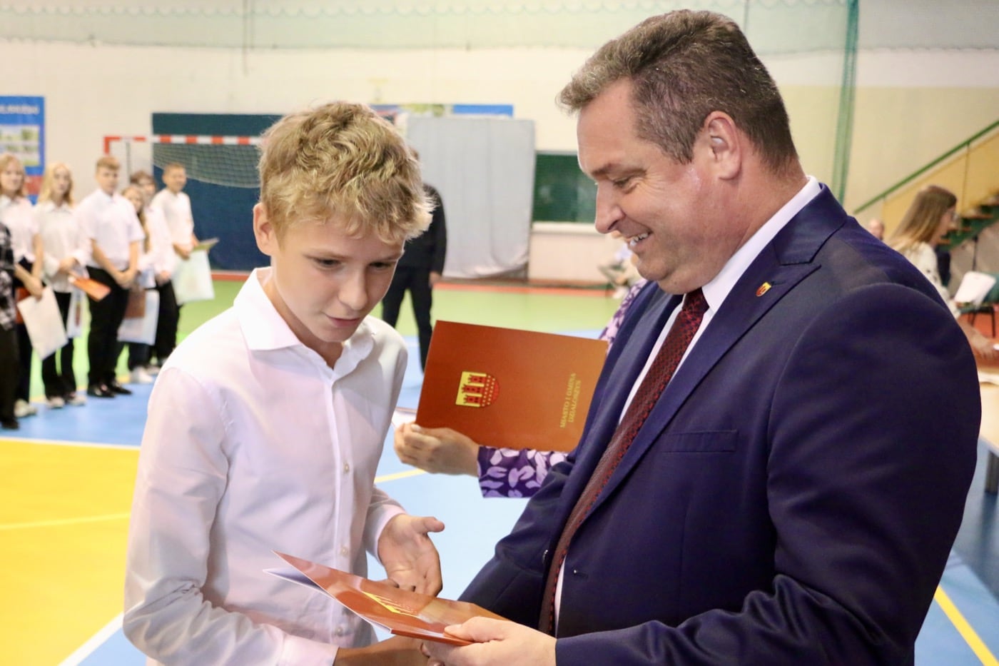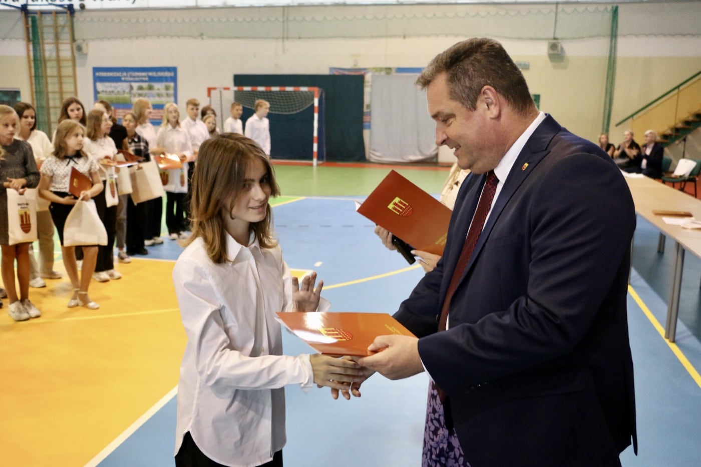 Podczas uroczystego wręczania stypendiów, Burmistrz Rafał Drab wyraził swoje uznanie i gratulacje dla nagrodzonych uczniów. W jego słowach można było wyczuć prawdziwą dumę z osiągnięć młodych ludzi.
