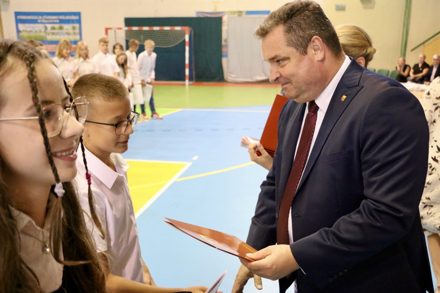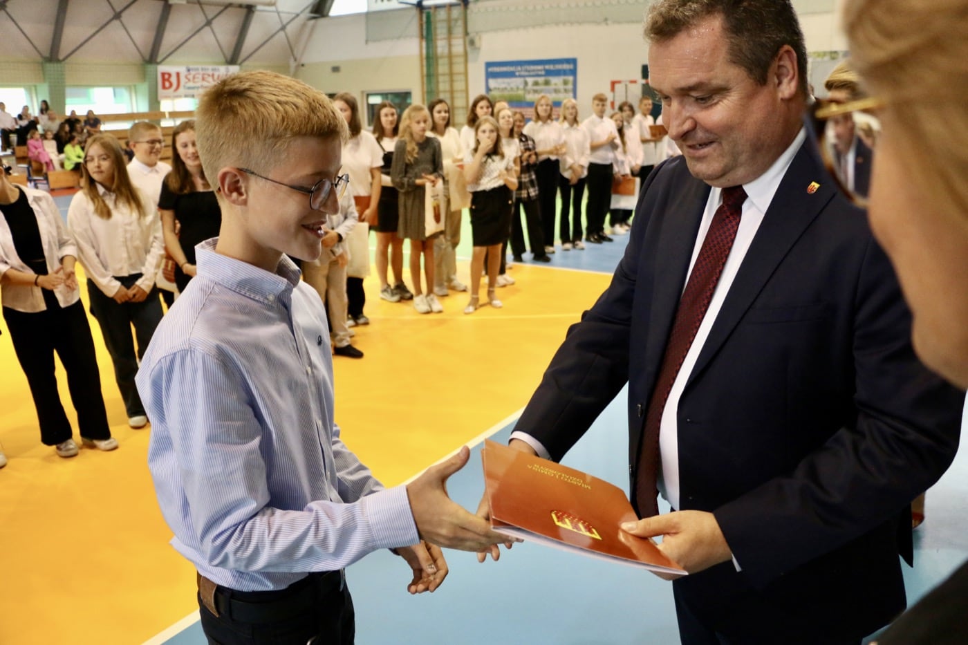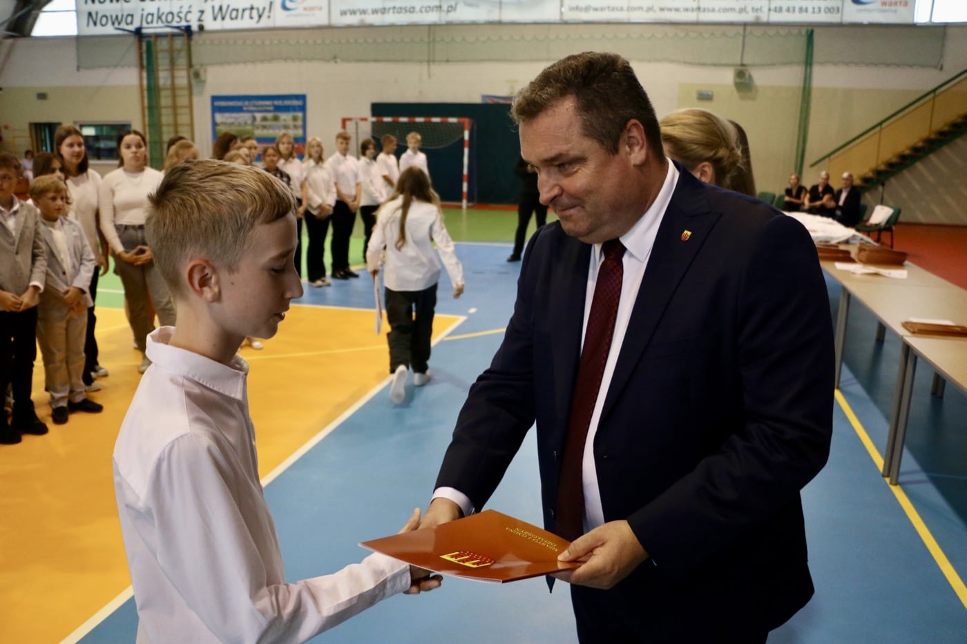 Podczas uroczystego wręczania stypendiów, Burmistrz Rafał Drab wyraził swoje uznanie i gratulacje dla nagrodzonych uczniów. W jego słowach można było wyczuć prawdziwą dumę z osiągnięć młodych ludzi.