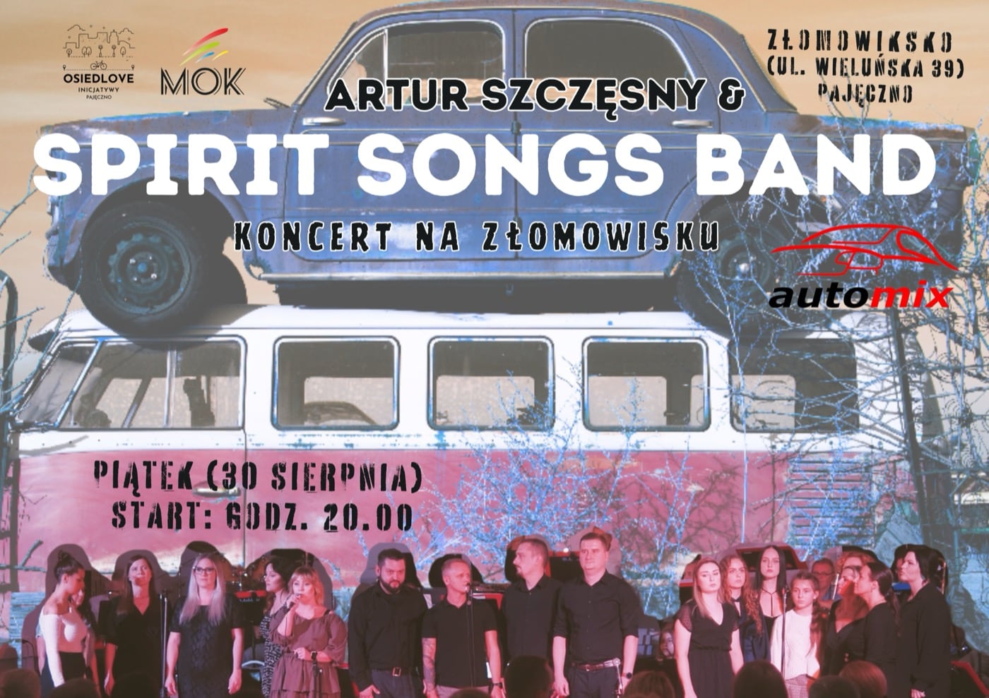 W zadziwiającej scenerii złomowiska dla aut wystąpi znany i lubiany chór SPIRIT SONGS BAND, prowadzony i muzycznie wspierany przez Artura Szczęsnego. Spirit Songs Band działa od 18 lat i ma liczne sukcesy na koncie. Wywodzi się Hades Bandu, chóru z 30-letnią historią. Od wielu lat grupą dowodzi Artur Szczęsny, multiinstrumentalista, kompozytor, aranżer, trener wokalny z ponad 30-letnim doświadczeniem muzycznym, dyrygent Orkiestry Cementowni Warta S.A . Koncert na złomowisku będzie zupełnie nowym doświadczeniem w karierze Spirit Songs Band.