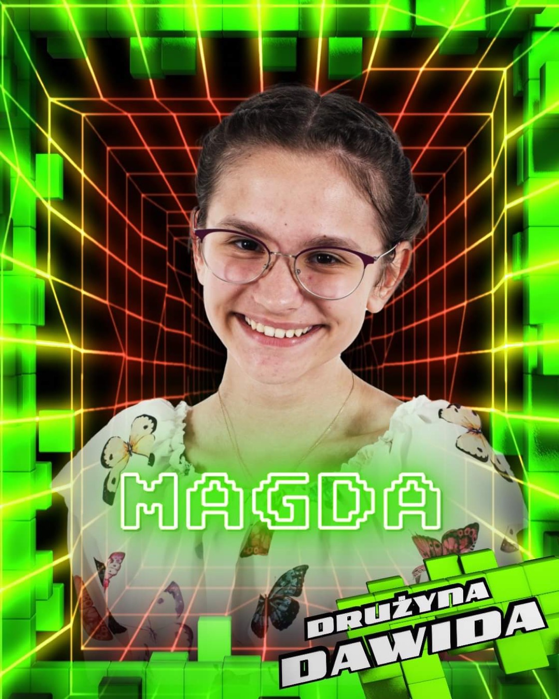 Magda pochodzi z Raciszyna. Ma 13-lat i uczęszcza do Szkoły Podstawowej im. Marii Konopnickiej. To podopieczna Miejsko-Gminnego Domu Kultury w Działoszynie. Obecnie uczy się śpiewu w Szkole Muzycznej „Talent” w Kłobucku. Jej niewątpliwy talent i osiągane sukcesy zostały dostrzeżone już w ubiegłym roku, burmistrz Działoszyna nagrodził dziewczynkę za promocję Miasta i Gminy Działoszyn w kraju i zagranicą.