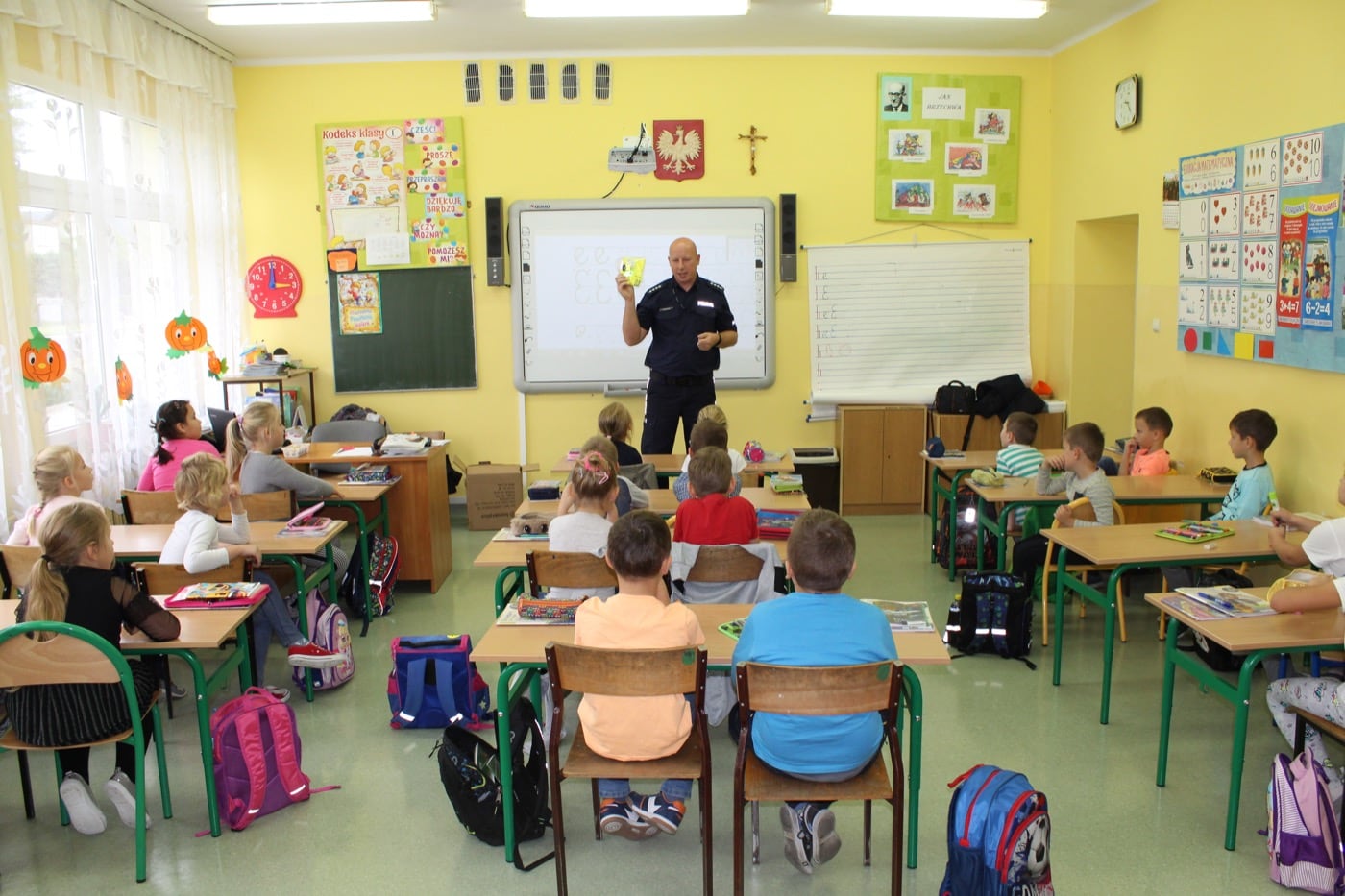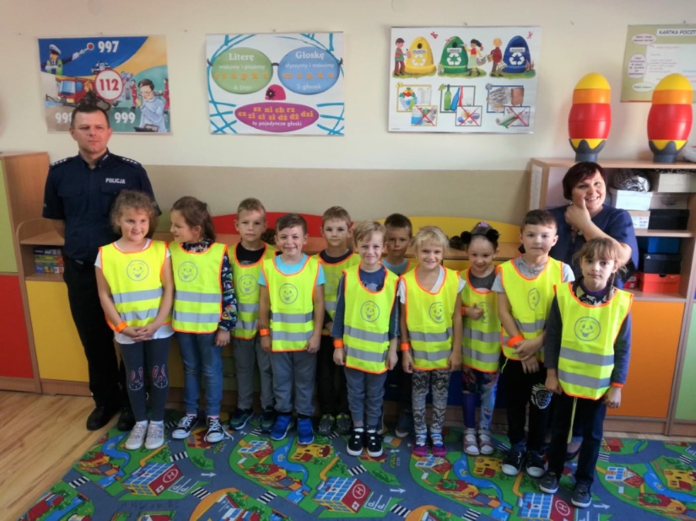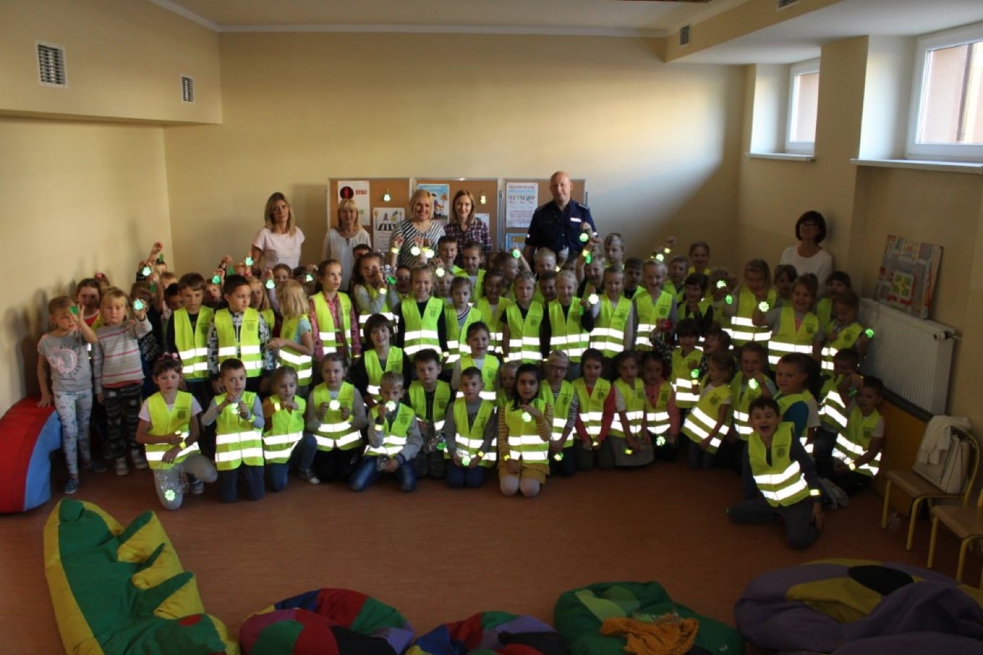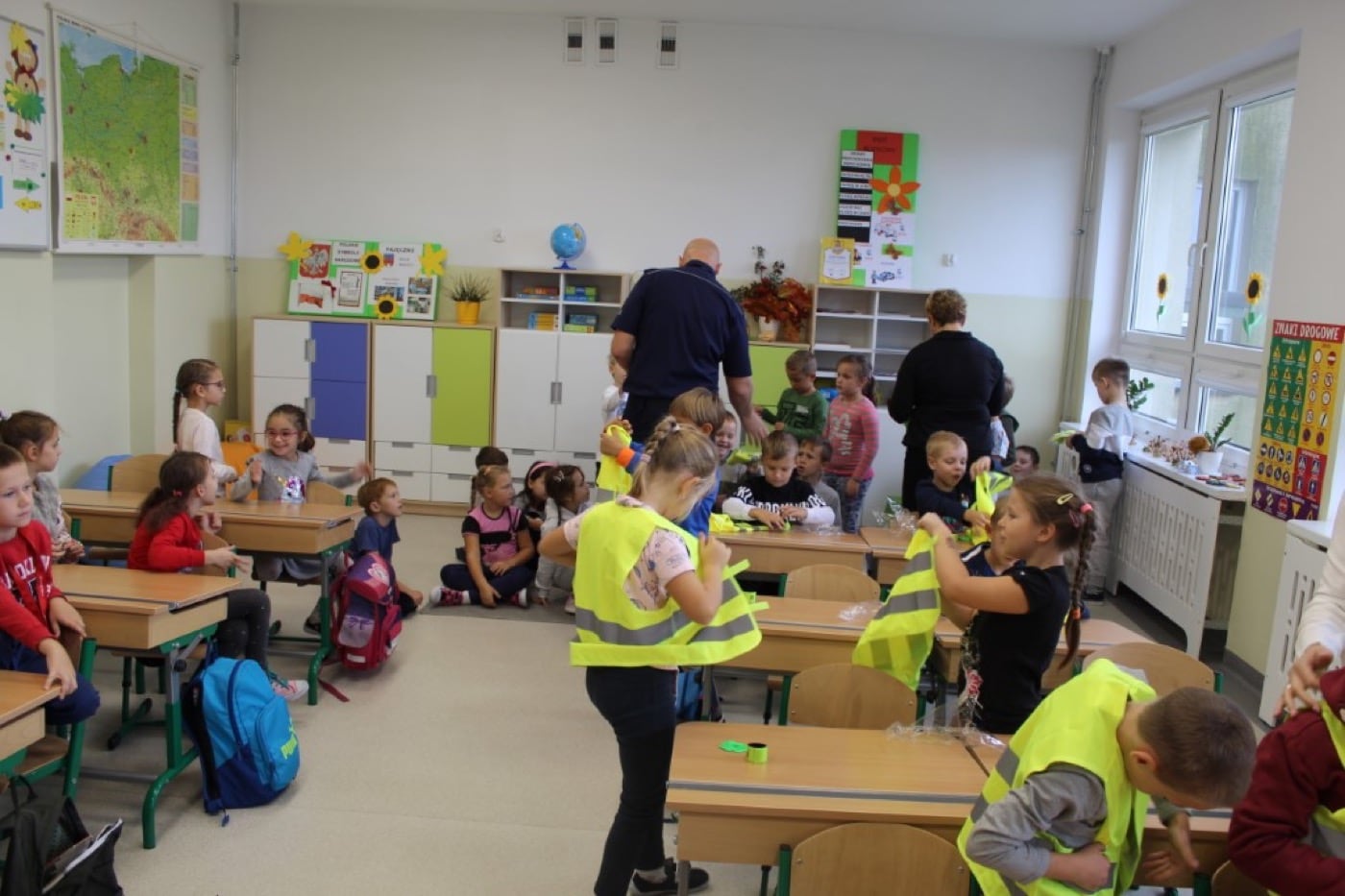 Głównym zadaniem stróżów prawa było wyposażyć wszystkich pierwszaków w elementy odblaskowe. Pakiet odblasków i akcesorii poprawiających bezpieczeństwo zakupiony został przez poszczególne Urzędy Gminy. Obdarowani uczniowie wykazali się dużą znajomością przepisów ruchu drogowego jak również z dużym zaangażowaniem uczestniczyli w zajęciach z funkcjonariuszami.