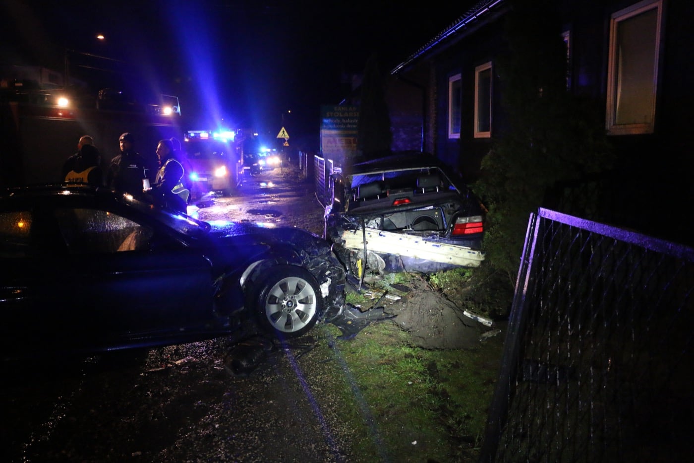 Do bardzo groźnie wyglądającego zdarzenia drogowego doszło minionej nocy w miejscowości Biała. Kierowca BMW wjechała w drugi pojazd tej marki. Podczas czynności na miejscu zdarzenia, policjanci znaleźli przy kierującym BMW podejrzaną substancje.