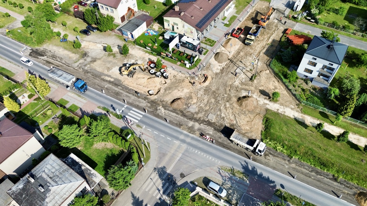 Trwa realizacja kolejnej ważnej inwestycji drogowej w Działoszynie. Na skrzyżowaniu ulic Piłsudskiego, Dmowskiego i Mickiewicza – w ciągu drogi krajowej nr 42 – budowane jest rondo, które ma poprawić bezpieczeństwo i płynność ruchu. W ramach zadania doświetlone zostaną również przejścia dla pieszych na ulicy Piłsudskiego.