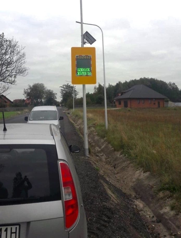Każdy kierowca, który przekroczy prędkość zostanie o tym fakcie poinformowany. Urządzenie wyświetli kierującemu o ile kilometrów na godzinę jedzie za szybko oraz przypomnij o tym, że powinien zwolnić. Każdy kto porusza się zgodnie z przepisami zobaczy komunikat „Dziękuję Rząśnia”.