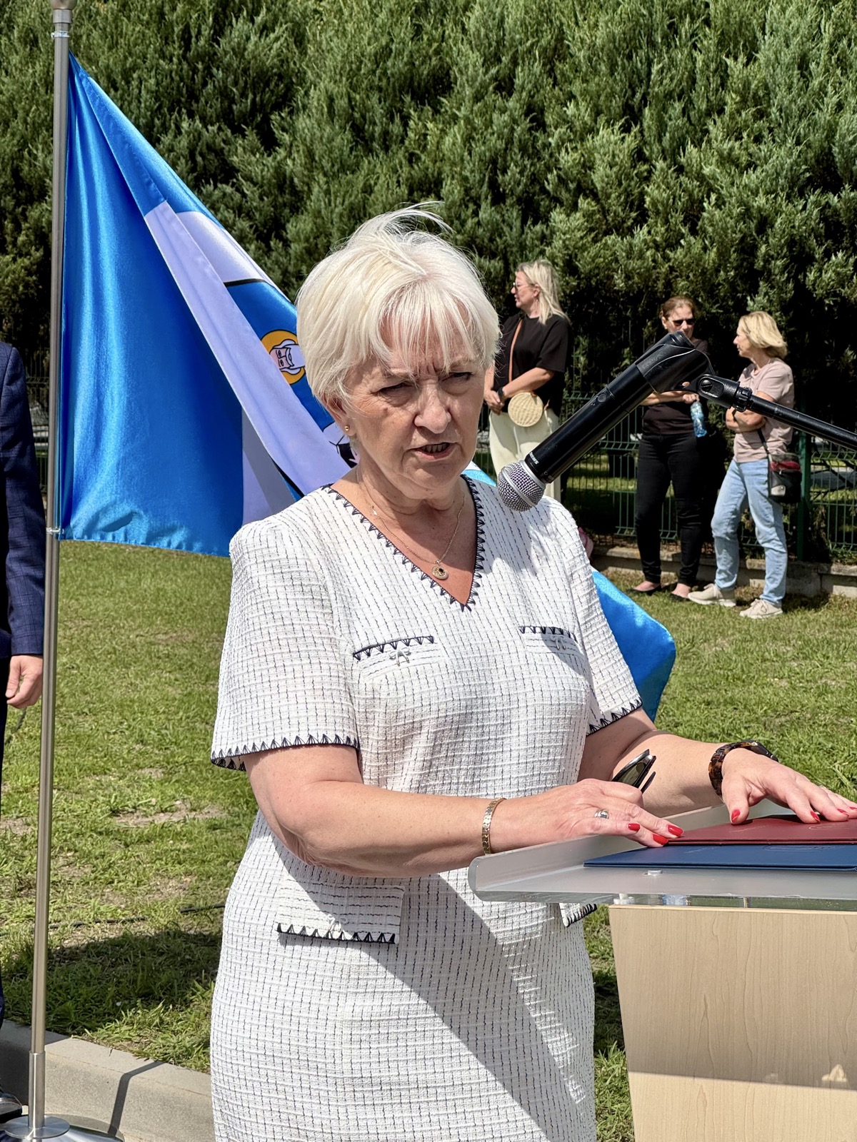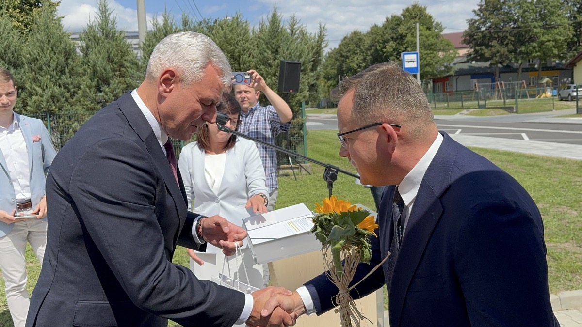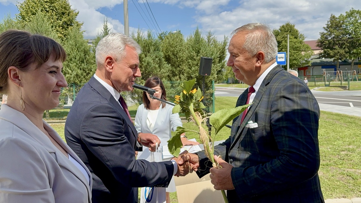 Wójt Stolarczyk podziękował wszystkim zaangażowanym w realizację inwestycji oraz mieszkańcom za cierpliwość podczas prac. Kierownik Referatu Inwestycji i Rozwoju Gminy, Przemysław Cimcioch, przybliżył historię przedsięwzięcia, a Sołtys Sołectwa Rząśnia, Ewelina Komor, wręczając kwiaty Wójtowi, wyraziła wdzięczność za dbałość o bezpieczeństwo i rozwój infrastruktury drogowej w gminie.