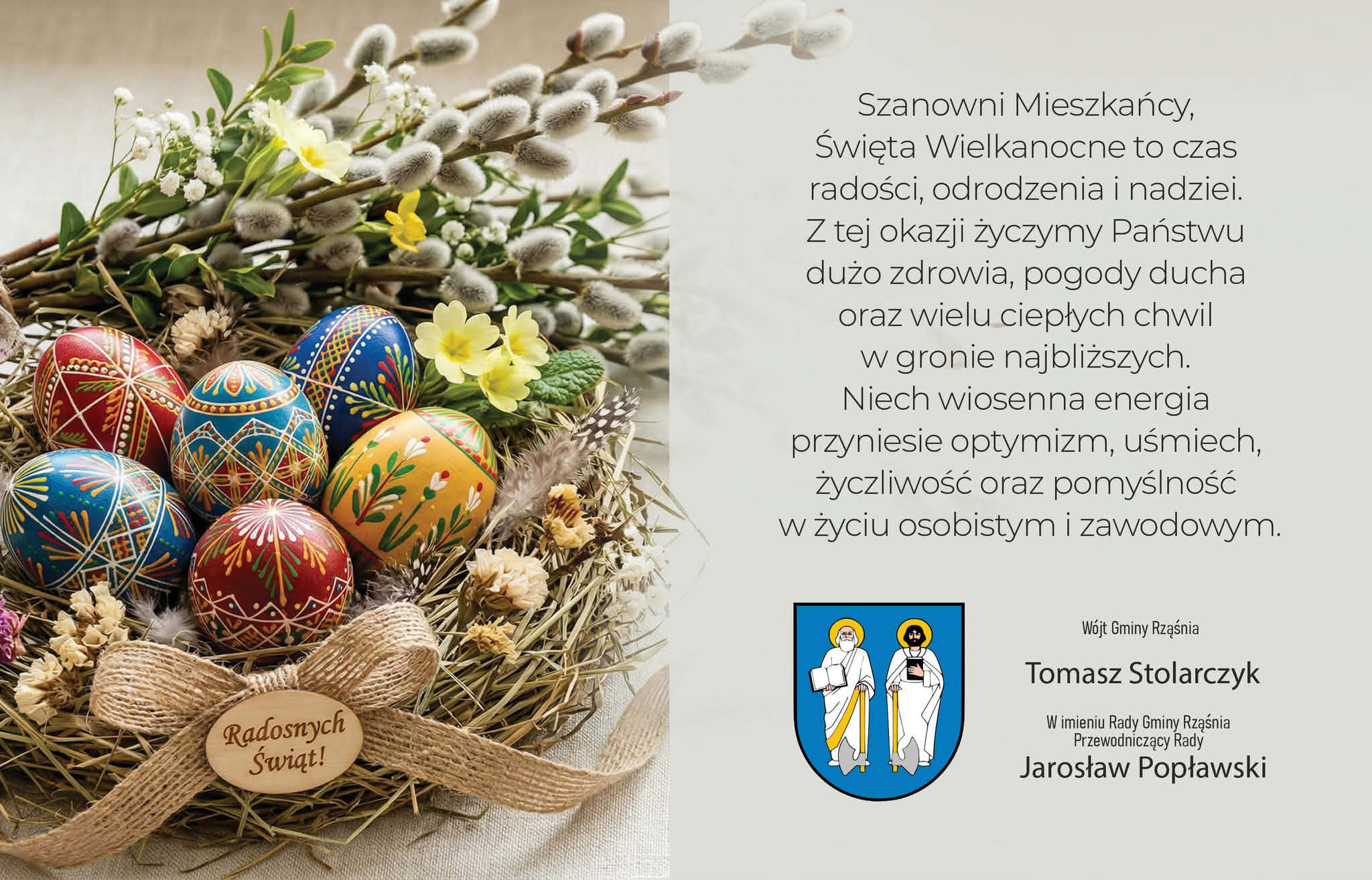 Życzenia Wielkanocne dla Mieszkańców Gminy Rząśnia