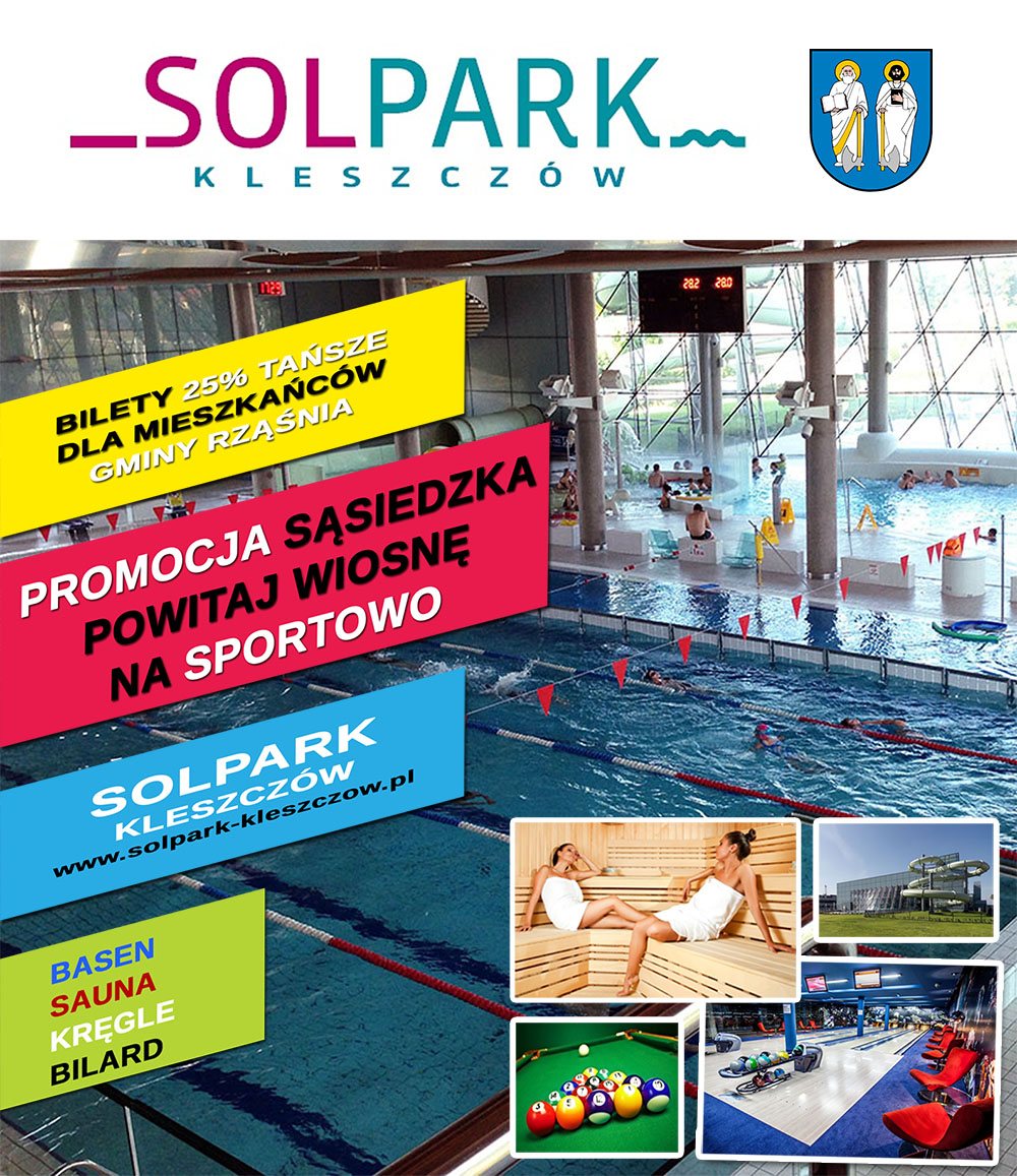 Mieszkańcy gminy Rząsnia mogą skorzystać z 25% zniżki na wybrane usługi oferowane przez najnowocześniejszy „Park zdrowia i rozrywki” w naszym rejonie. Promocja ma zastosowanie dla biletów jednorazowych na: