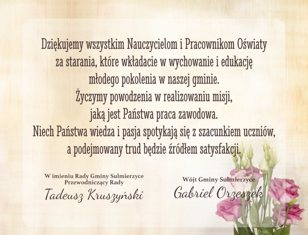 Życzenia z okazji Dnia Edukacji Narodowej od władz Gminy Sulmierzyce